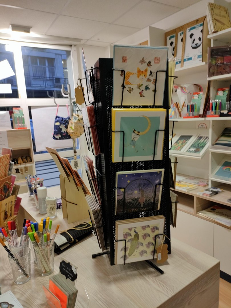 Papeterie de qualité, marques clairefontaine, petit gramme, agent paper, côté bordeaux, miao, l'atelier du papier, lamali etc. Principalement carnets et cahier A5, A4, cahier de voyage, stylo herbin et stabilo, papier à lettre, enveloppes et cartes, magnets, trousses.