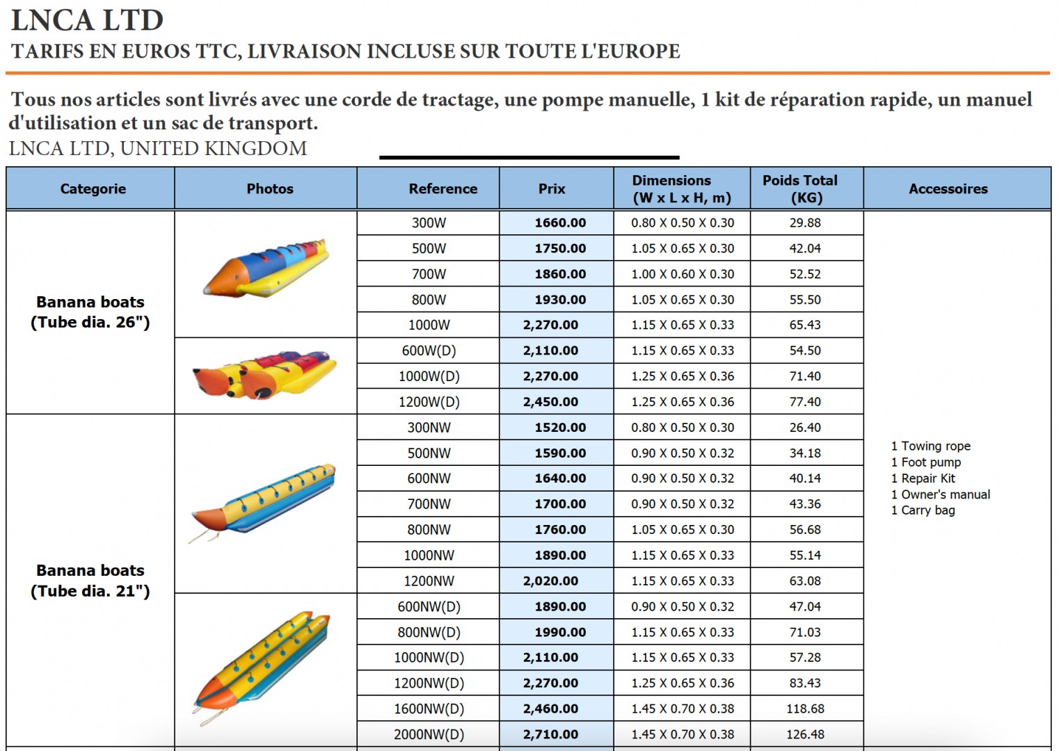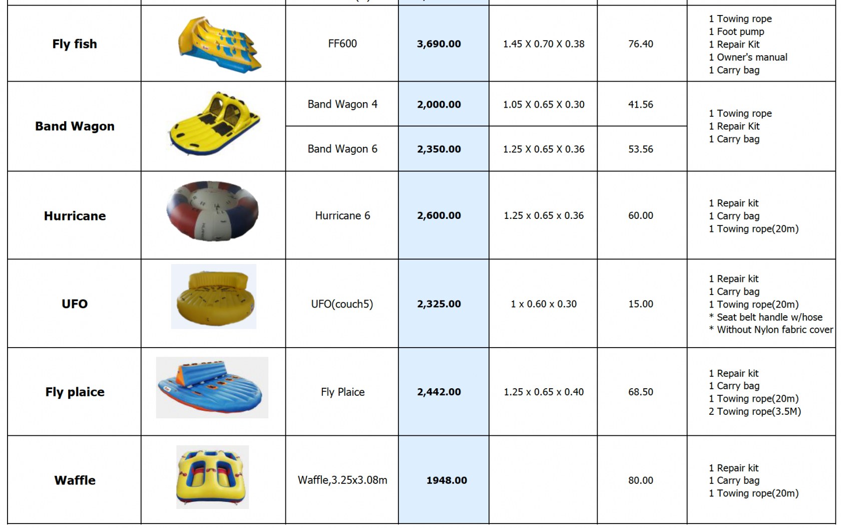 Jeux nautiques gonflables et tractables, flyfish, bandwagon, bananes, bouées