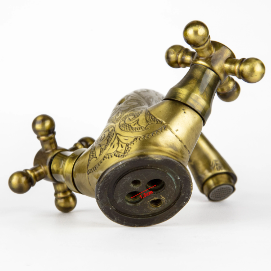This Brass Faucet engraved Double Handle For Bathroom Sink With Two Cross Handles, Hand Etched belongs to the collection known around the world, which is manufactured locally in the city of Marrakesh and Fez, Morocco, by skilled craftsmen. They provide different types like unlacquered brass faucets, brass sinks and also Antique Brass Shower Head and more. It is handmade from brass and copper, so that these products can be used in The kitchen, outdoor and indoor, bathroom, hall, inside and home furniture so that it gives an exceptional character and a wonderful spirit to the place.