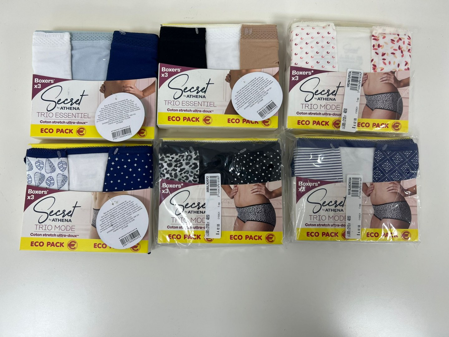 Nous sommes déstockeurs depuis 40ans et proposons actuellement des boxers femmes d'une grande marque. Ce sont des collections très récentes. Lot de 200 Pcs assortis en taille et en modèles. Possibilité d'acheter de grosses quantités. D'autres marques sont disponibles. D'autres produits sont disponibles: pulls/chemises/vestes/robes/chaussures/ceintures. en homme/femme/enfants.