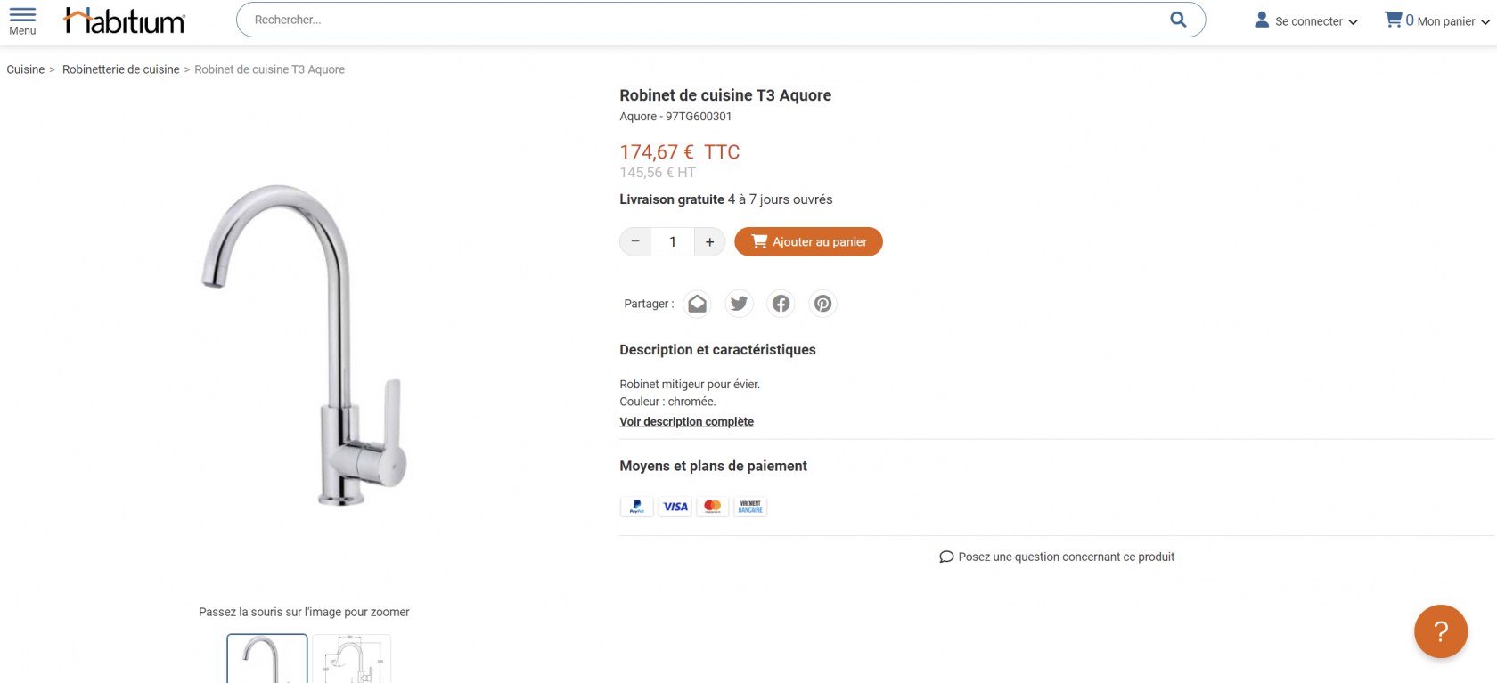 DESTOCKAGE EXCLUSIF Robinet de cuisine T3 Aquore