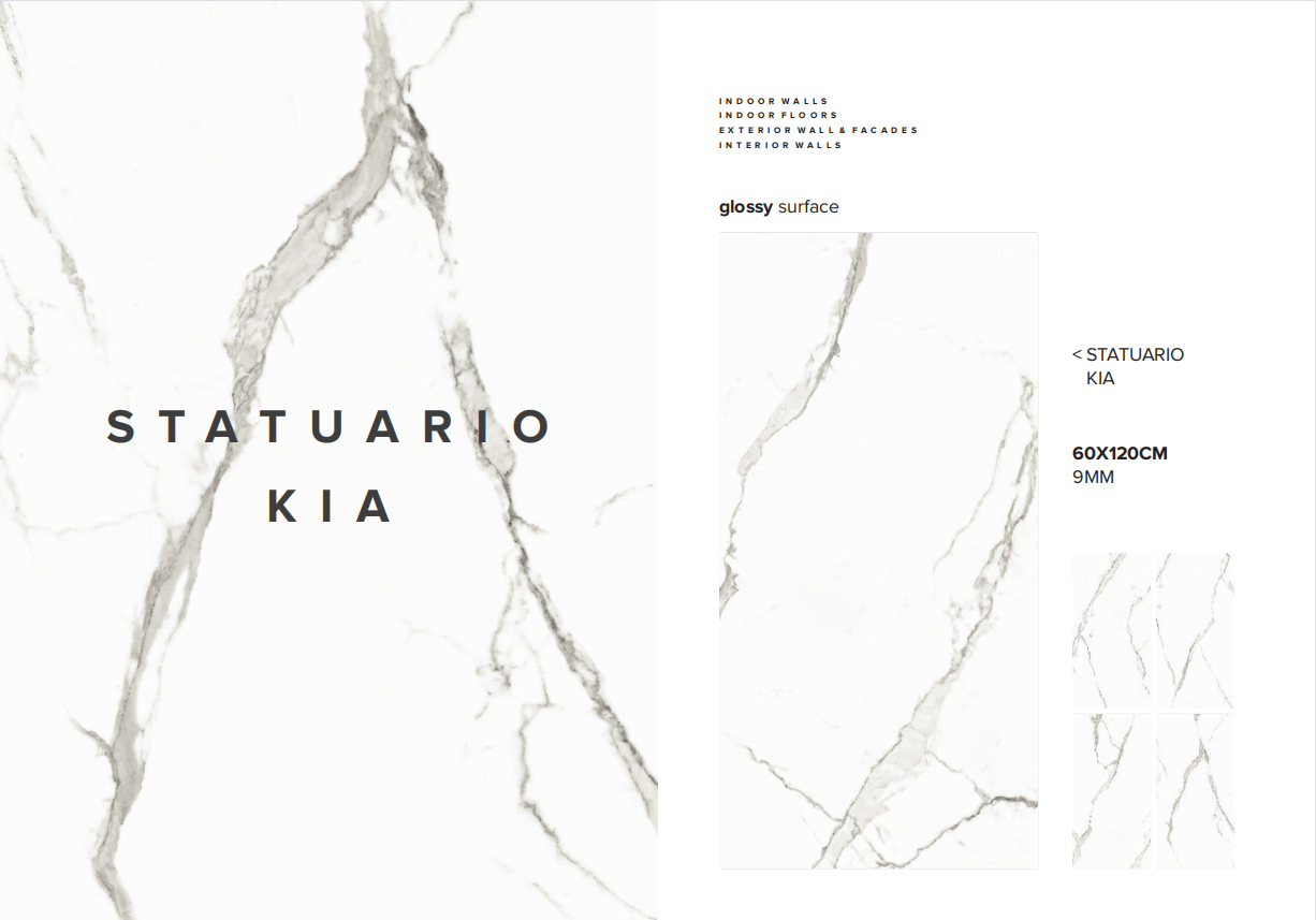 Carrelage 60x60 et 60x120 - Mat et Brillant - Statuario Kia