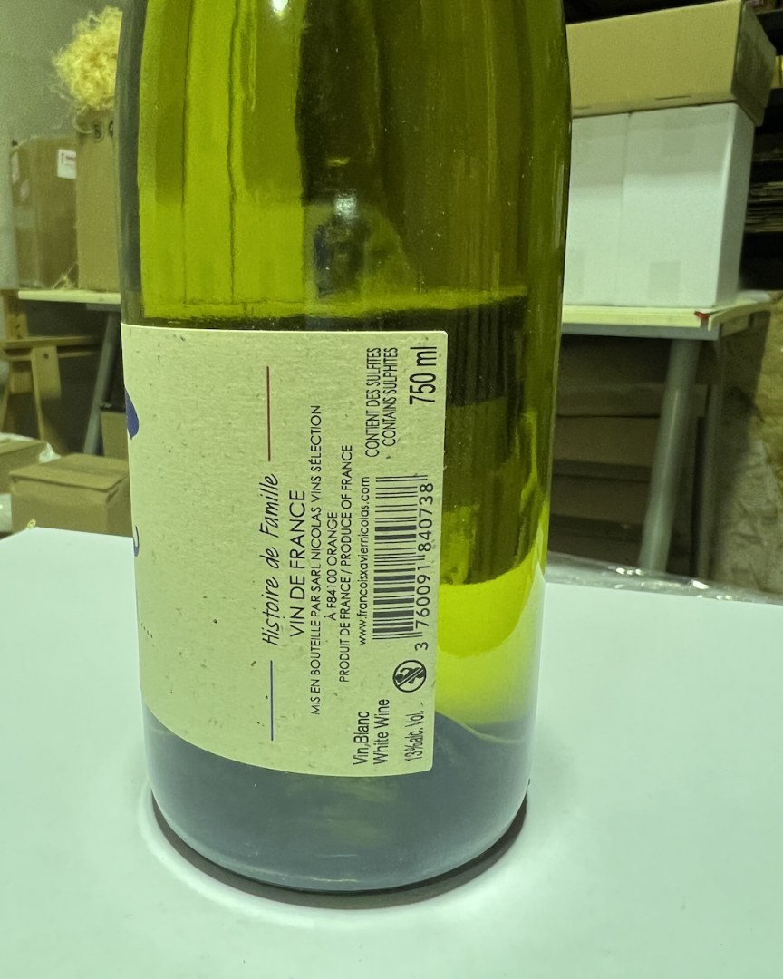 Destockage de 994 bouteille de vin blanc "Maison François-Xavier Nicolas Monsieur N… P'ti Blanc, Vin de France"