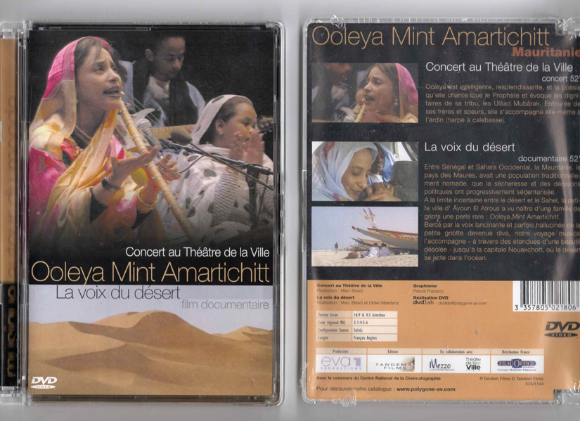 Entre Sénégal et Sahara Occidental, la Mauritanie, le pays des Maures, avait une population traditionnellement nomade, que la sécheresse et des décisions politiques ont progressivement sédentarisée. A la limite incertaine entre le désert et le Sahel, la petite ville de Layoun a vu naître d'une famille de griots une perle rare : Ooleya Mint Amartichitt. S'accompagnant elle-même à l'ardtn (harpe à calebasse), entourée de son frère - joueur de tidinit (luth à 5 cordes) et des voix de ses soeurs, elle chante, hurle ou murmure une poésie de louanges au Prophète ou aux dignitaires de sa tribu, les Ulâad Mubârak. Bercé par la voix lancinante et parfois hallucinée de la petite griotte devenue diva, notre voyage musical nous conduit - à travers des étendues d'une beauté désolée - jusqu'à la capitale Nouakchott, où le désert se jette dans l'océan.