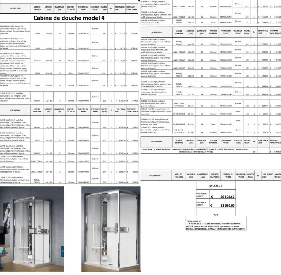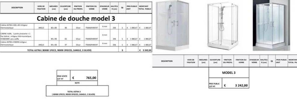 - cabines de douche