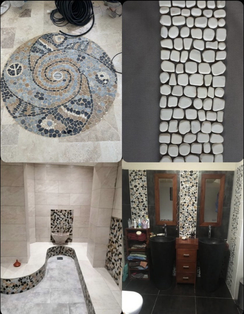 LOT 1) 60 m2 de plaques de galets 30 x 30 cm