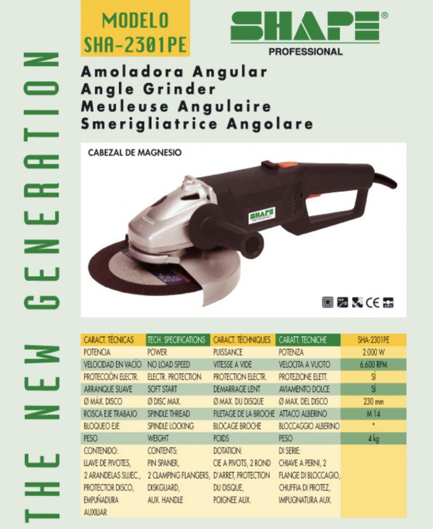 SHA-2301PE - GRINDER 2000W - 230MM. --> 110 unités --> 24,92€