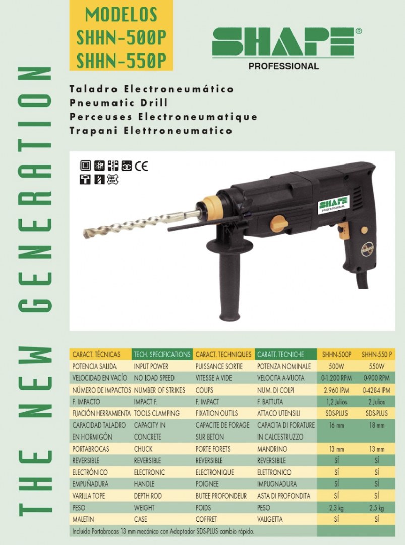 SHHN-500P - ELECTRO-PNEUMATIC DRILL 500W --> 67 unités --> 28,72€