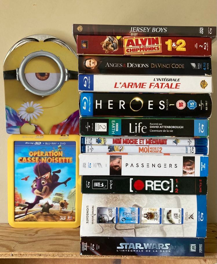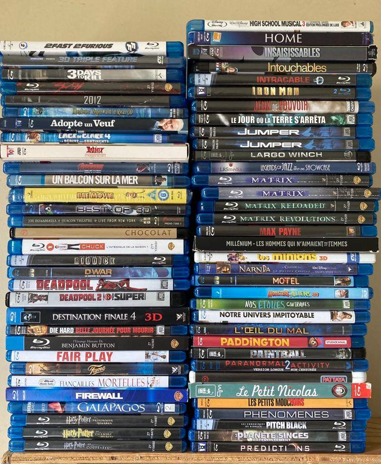 131 Blu ray d'occasion. Certains proviennent d'un Vidéo-club et ont une étiquette collé autour du cercle ( voir photo ).