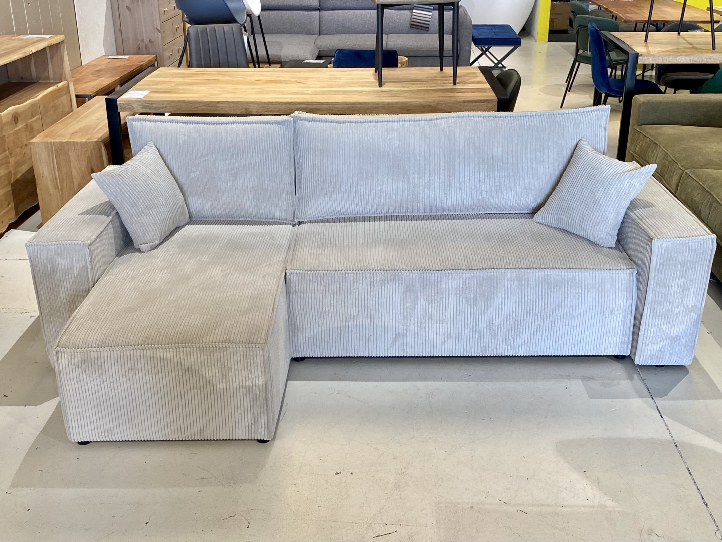 Canapé angle convertible couchage, angle réversible, tissu velours côtelé, coloris au choix. Minimum de vente: 10 pièces, à partir de 280,00 euros HT - prix départ Pologne - possibilité d'organisation du transport ou retrait entrepôt France (tarif sur demande). Dimensions du modèle présenté: longueur 245 cm, profondeur méridienne 145 cm.