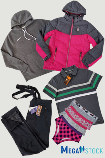 Le lot contient des modèles issus de collections de marques de réputation mondiale - sweatshirts, coupe-vent, vestes, gilets, pantalons, pulls, sweats à capuche, shorts, sous-vêtements, chapeaux, chaussettes, T-shirts et autres vêtements de sport pour hommes et femmes.