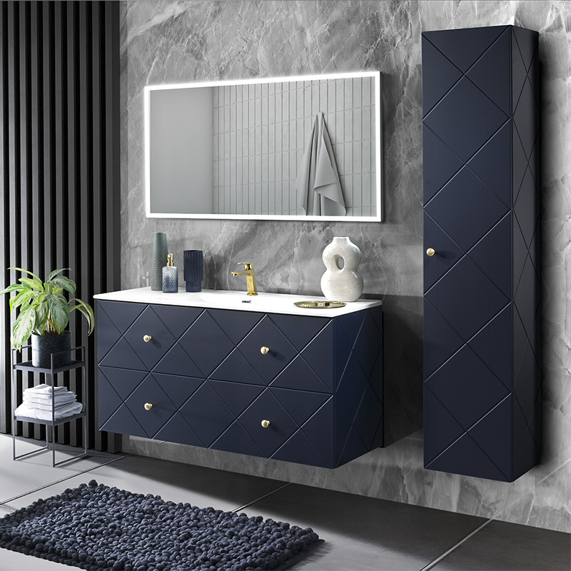 Le meuble principal de la collection "Elegance Blue" est un véritable joyau de design. Son fini bleu nuit profond crée une ambiance sophistiquée et apaisante, tandis que ses lignes épurées et ses détails méticuleux ajoutent une touche de modernité. Le meuble offre également un espace de rangement généreux, alliant style et fonctionnalité.