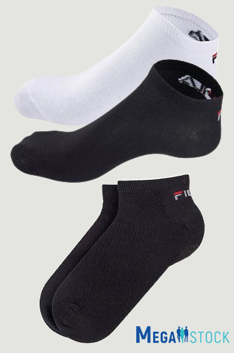 Chaussettes unis de la marque italienne Fila, destockage. Le lot contient un modèle en noir et blanc, avec un logo d'entreprise.