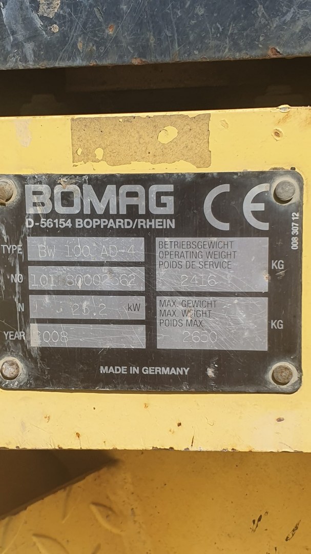 Compacteur tandem Bomag BW100 AD-4 année 2008, très bon état de fonctionnement rien à prévoir.