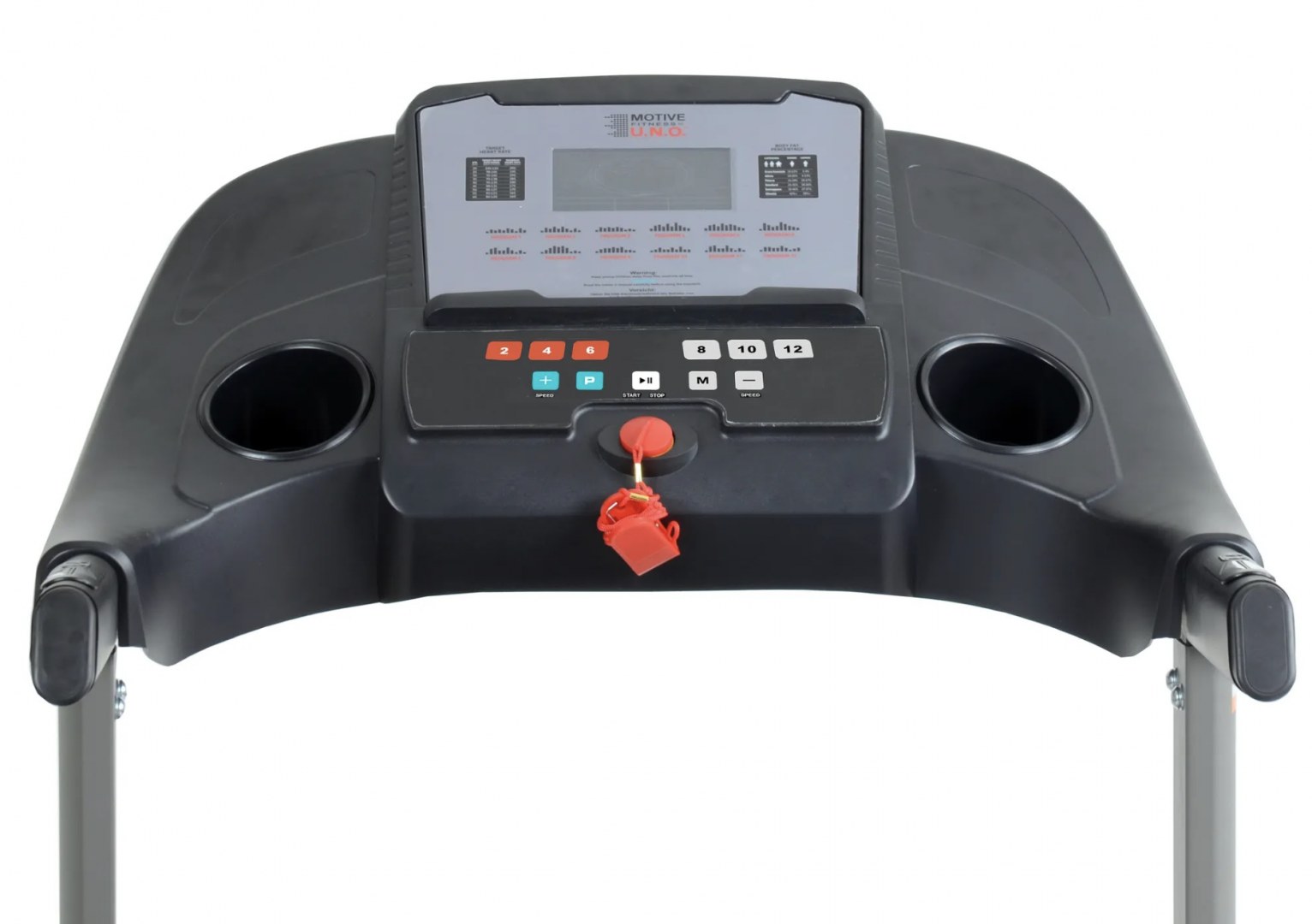 Tapis de course fitness Speed Master 1,8 M de MOTIVE Fitness by U.N.O.. L'inclinaison peut être réglée manuellement en 3 étapes à l'aide d'une poignée à levier. C'est tout à fait suffisant, surtout pour les personnes qui ne s'entraînent pas souvent sur le tapis roulant ou les personnes qui marchent ou marchent principalement. Le Speed Master 1,8 M est la variante économique d'un tapis de course pour les débutants et les sportifs.