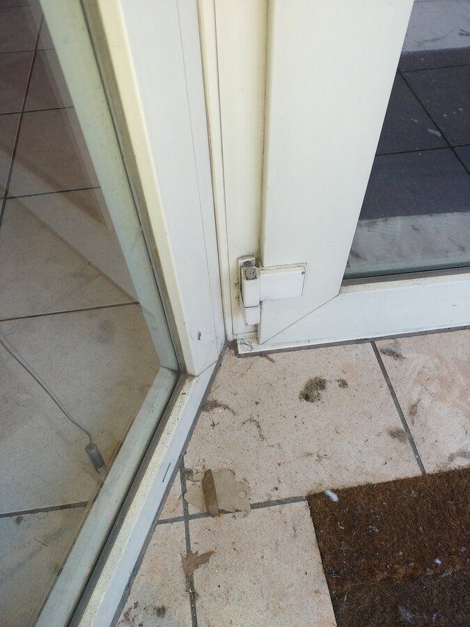 Modèle 2 : cloison vitrée alu gris avec porte et poignée PVC noir