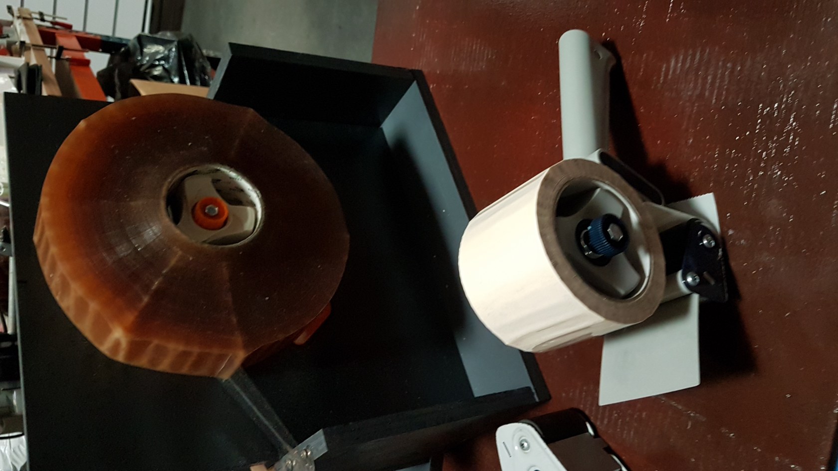 Nous avons également en stock tous les dévidoirs manuels en 50 mm ou 75mm pour rouleaux de 100 ,500 ou 1000 mètres ainsi que des dévidoirs de table pour rouleaux de 100 ,500,1000 et 1500 mètres.