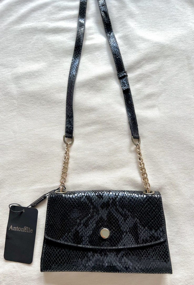 Voici la brève description de la pochette de soirée en cuir de couleur camel ornée d'un imprimé serpent de la marque Antonelle. Ce sac à main polyvalent, fabriqué en Italie avec un souci du détail remarquable par Fratelie peletiere, est idéal pour les occasions spéciales et les sorties en soirée. Sa bandoulière réglable permet un port confortable, tandis que son intérieur spacieux peut accueillir tous vos essentiels de maquillage ainsi qu'un téléphone Max avec une coque standard et un portefeuille de taille standard. Cet article étant une édition limitée des premières collections de la marque, il n'est plus disponible en boutique ni en ligne. Veuillez noter une légère décoloration au niveau des anneaux due à un défaut de chromage, qui n'altère en rien son élégance et sa praticite.
