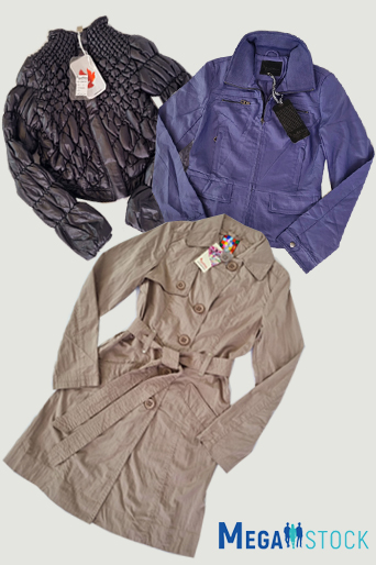 Le lot contient des vestes élégantes pour femmes avec et sans capuche, des imperméables, des trenchs et d'autres vêtements d'extérieur pour le printemps et l'automne. L'article est neuf, dans son emballage d'origine.