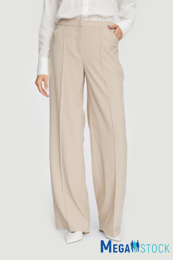 Le lot contient un modèle de couleur beige. Elégant pantalon ample avec flèches, poches intérieures.