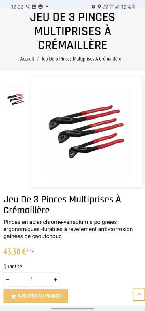 DESTOCKAGE JEU DE 3 PINCES MULTIPRISES À CRÉMAILLÈRE