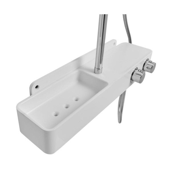 - Dispose d'une tablette permettant de disposer une éponge et un gel douche, par exemple. Également idéal pour les petites salles de bains