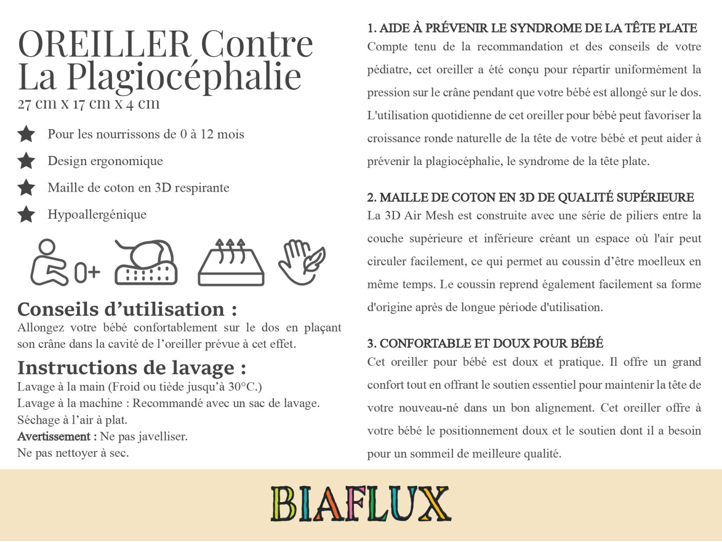 Coussins décoratifs pour bébé anti tete plate. Liquidations de la marque BIAFLUX car insufisence pour déveloper la marque.