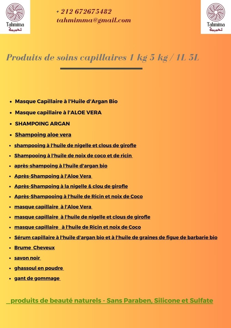Fournisseur des produits cosmétiques basé sur huile Argan et huile de figue de barbarie pour hammam & spa : creme gommage champoing et autre produits