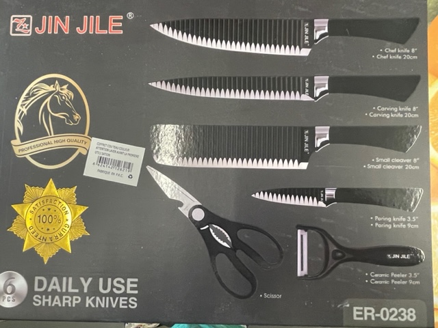 Coffret, set couteaux cuisine en acier frappé - 6 pièces