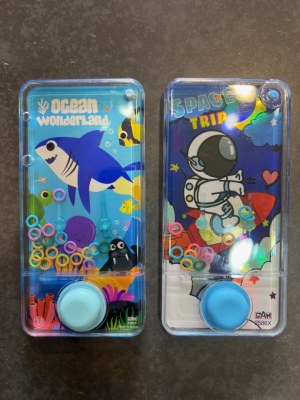 Appuyez sur les boutons pour mettre en mouvement les anneaux et les enfiler sur les cibles. Le jeu à eau est tellement petit que vous pourrez l'emportez partout avec vous et vous entraîner jusqu'à ce que vous deveniez un champion.