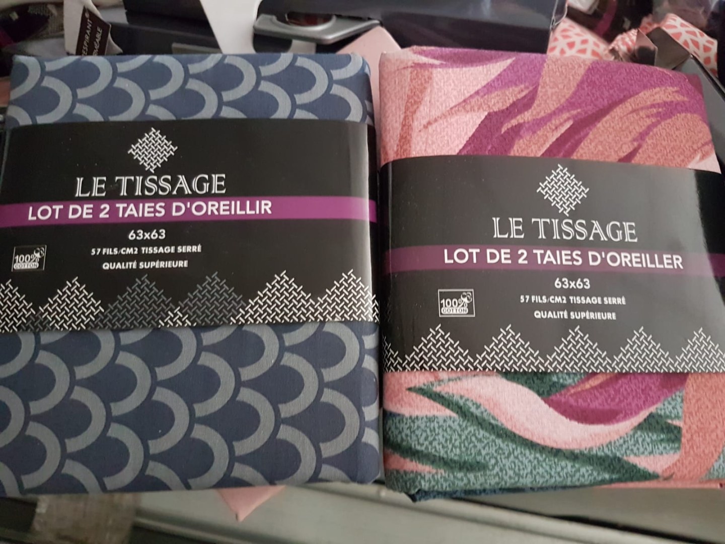 taies d'oreillers 63/63 et 50/70 uni et imprimé , matiere 100% cotton