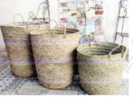 Lot de 3 grandes corbeilles rondes en doum,qui servirant de fourre tout pour les jouets ou autres.Dimensions PM: diam 35 h 40 cm-MM: diam 45 h 50 cm- GM: diam 50 h 560 cm.Fabriqué au Maroc.Le prix du lot est de 50.00 € ht,plus frais de port.