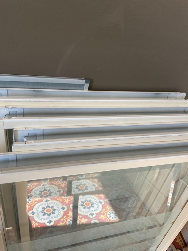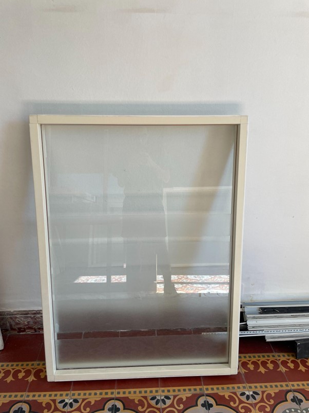 Lot de 5 chassis fenetres fixes rectangulaires avec cadre finition blanc (cassé) en acier