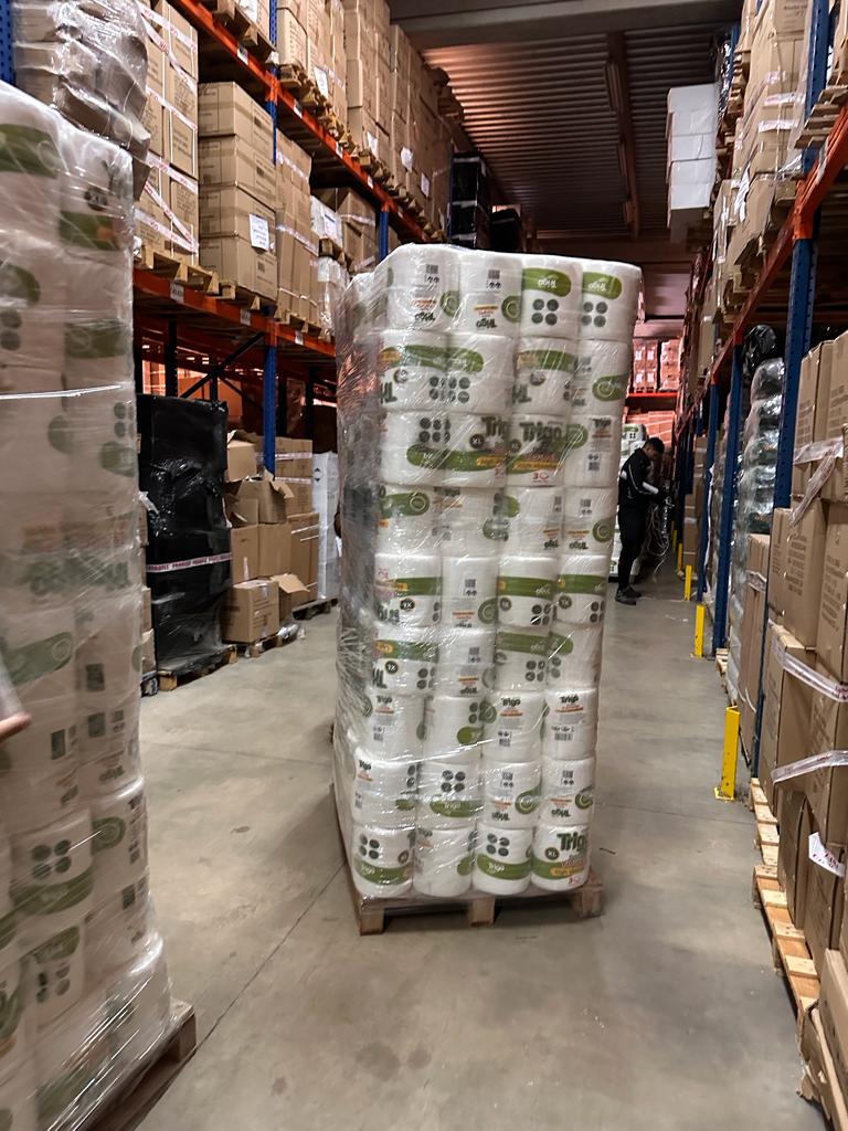 Par palette : 27 ballots de huit rouleaux de Sopalin, soit 216 rouleau dans une palette