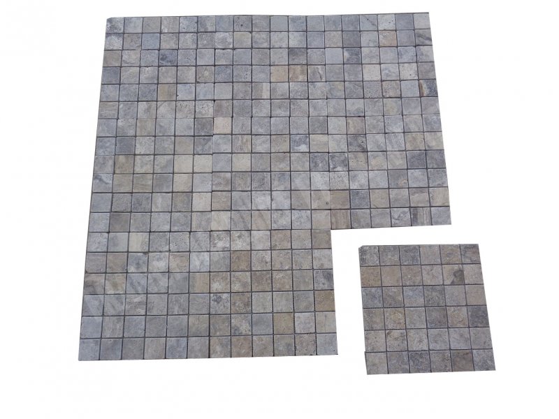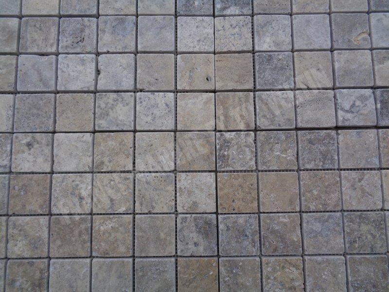 Travertin Silver Mosaïque 4,8x4,8 cm Qualité : 1'er Choix Finition : Antique & Vieilli