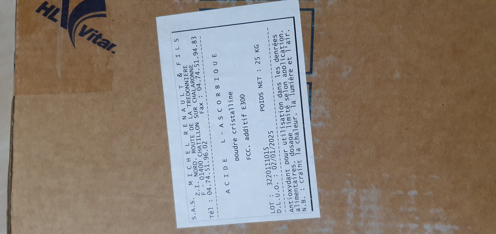 ACIDE ASCORBIQUE E300 CARTON DE 25KG
