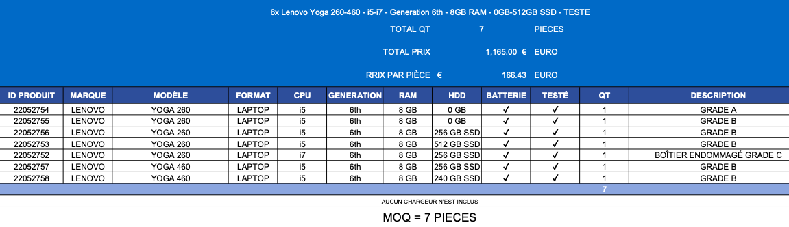Lot 7 Pc portables x Lenovo Yoga 260-460 - i5-i7 - Generation 6th - 8GB RAM - 0GB-512GB...