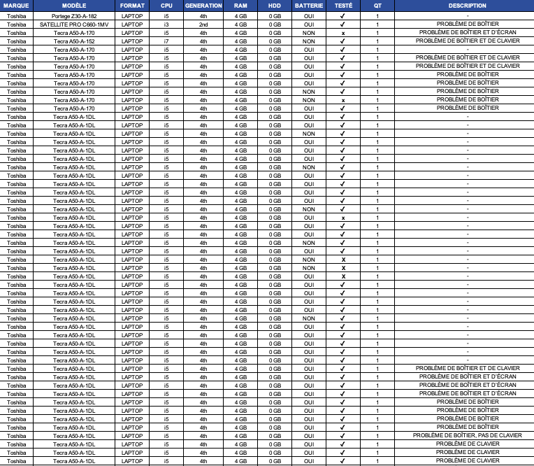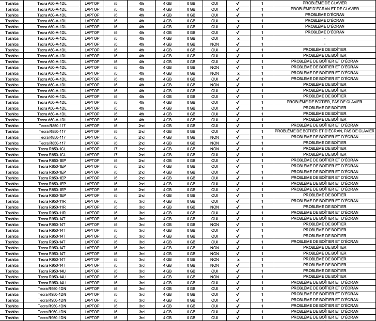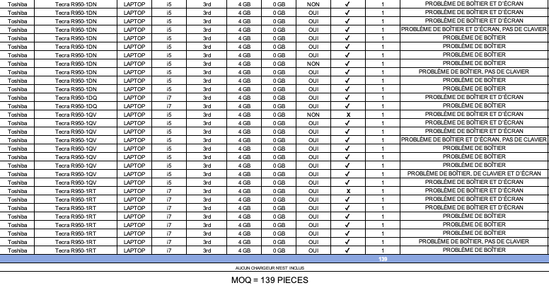 139x Toshiba Mix Laptops - i3-i5-i7 - 2nd-4th - 4GB RAM - SANS HDD - TESTES AVEC DES PROBLEMES MINEURES