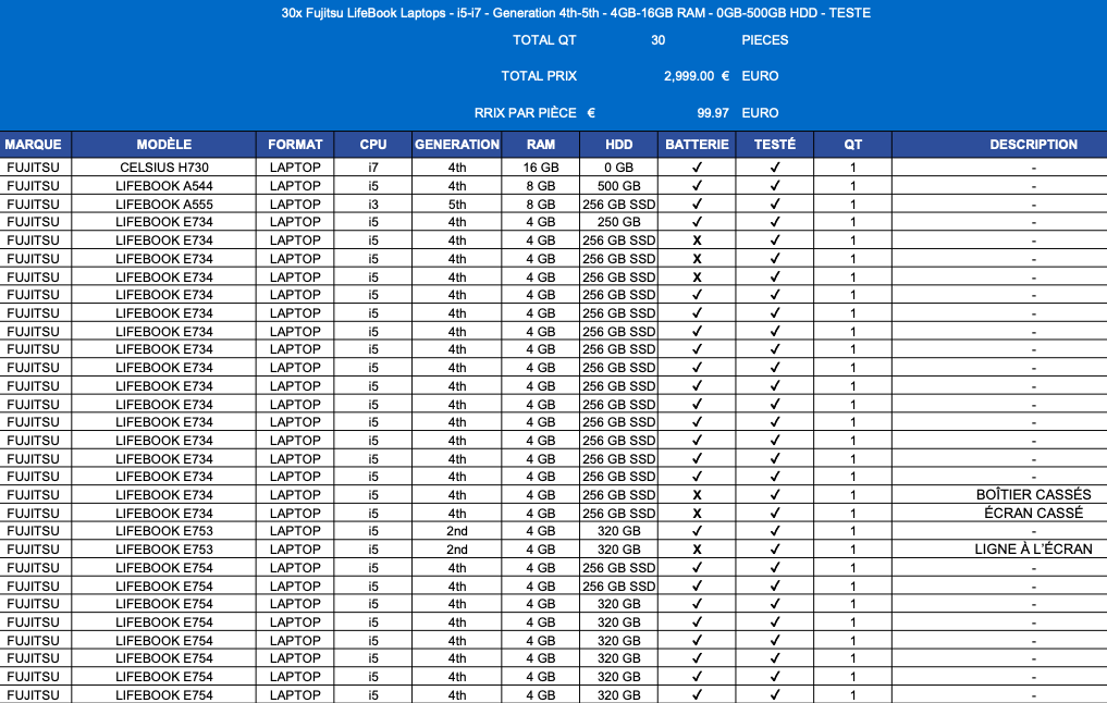 30x Fujitsu LifeBook Laptops - i5-i7 - Generation 4th-5th - 4GB-16GB RAM - 0GB-500GB HDD - TESTE