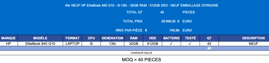 40x NEUF HP EliteBook 640 G10 - i5-13th - 32GB RAM - 512GB SSD - NEUF EMBALLAGE D'ORIGINE