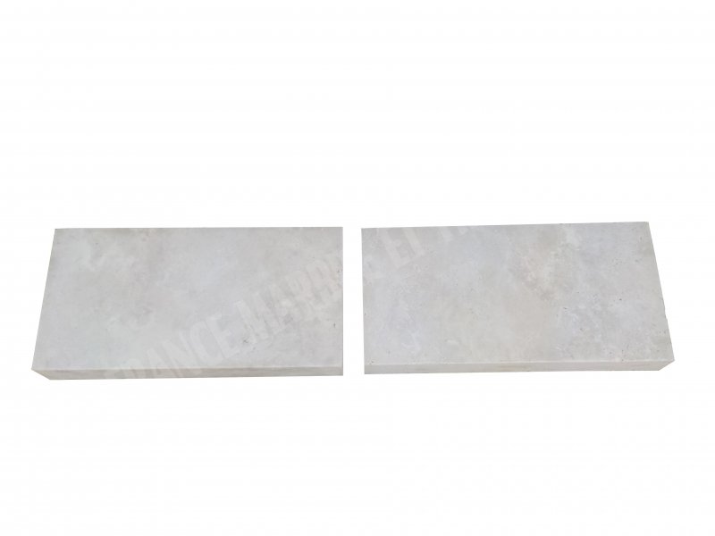 Margelle travertin beige clair 30.5x61x8 cm bord droit 1er choix REF 563
