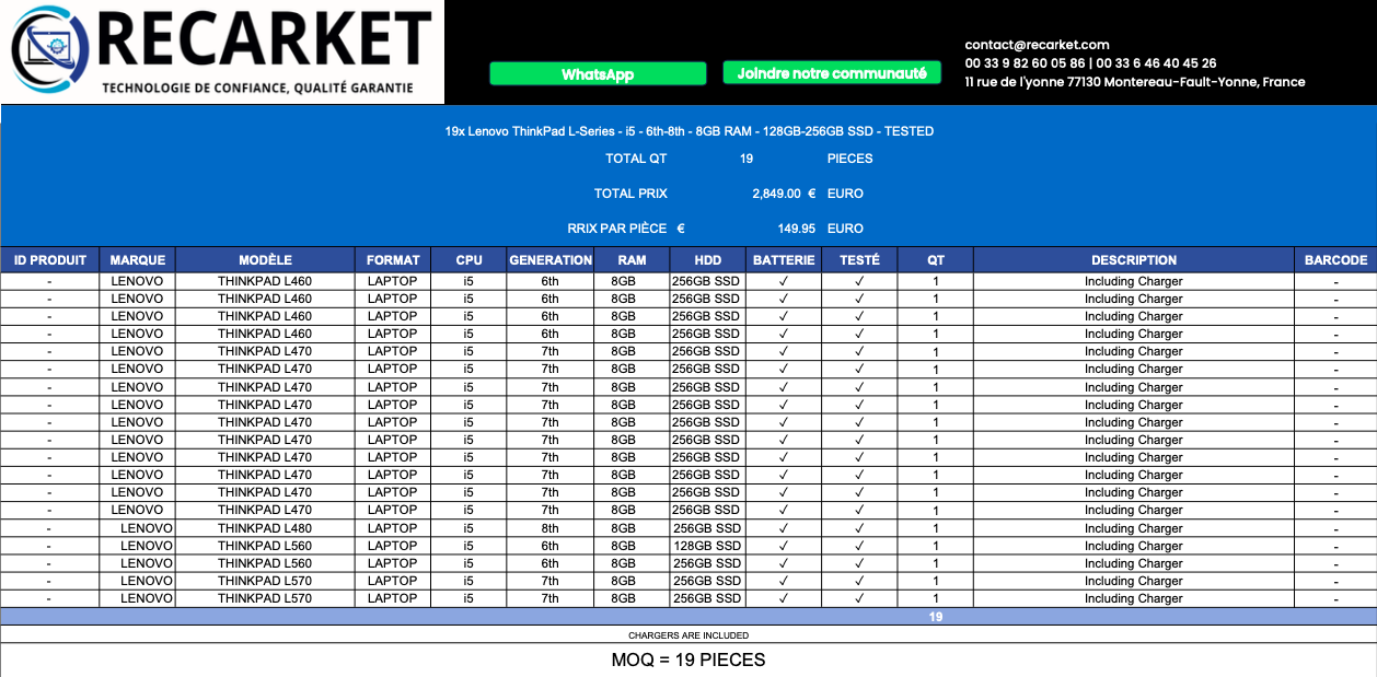 Cette page concerne les Fournisseurs et Grossistes de 19 x Lenovo ThinkPad L-Series - i5 - 6th-8th - 8GB RAM - 128GB-256GB SSD - TESTED Rechercher dans la catégorie : Informatique Rechercher dans la catégorie : tested, 256gb, lenovo, 128gb, thinkpad, series |