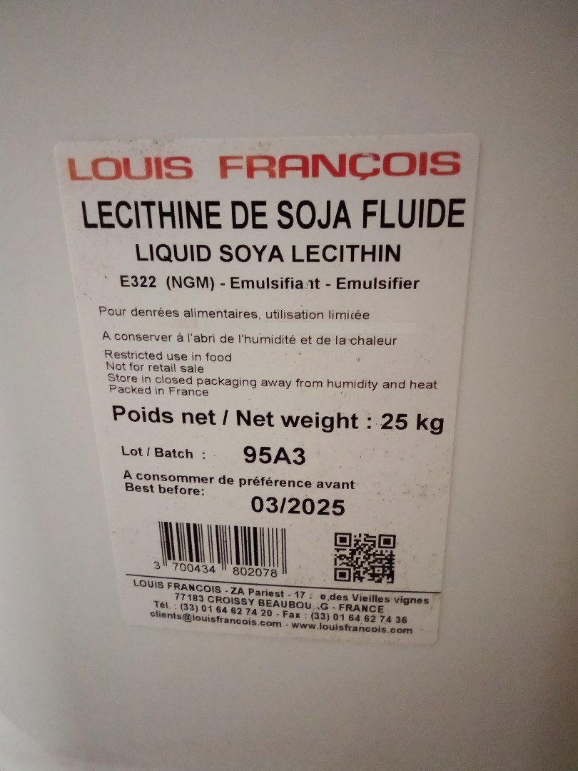 150 kg de lecithine de soja de chez LOUIS FRANCOIS Paris