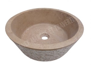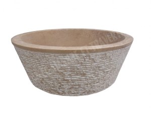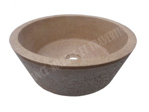 Travertin Noce Marron Vasque Modèle Mi-Conique Strié Hauteur : 15 cm Qualité : Rustiqu...