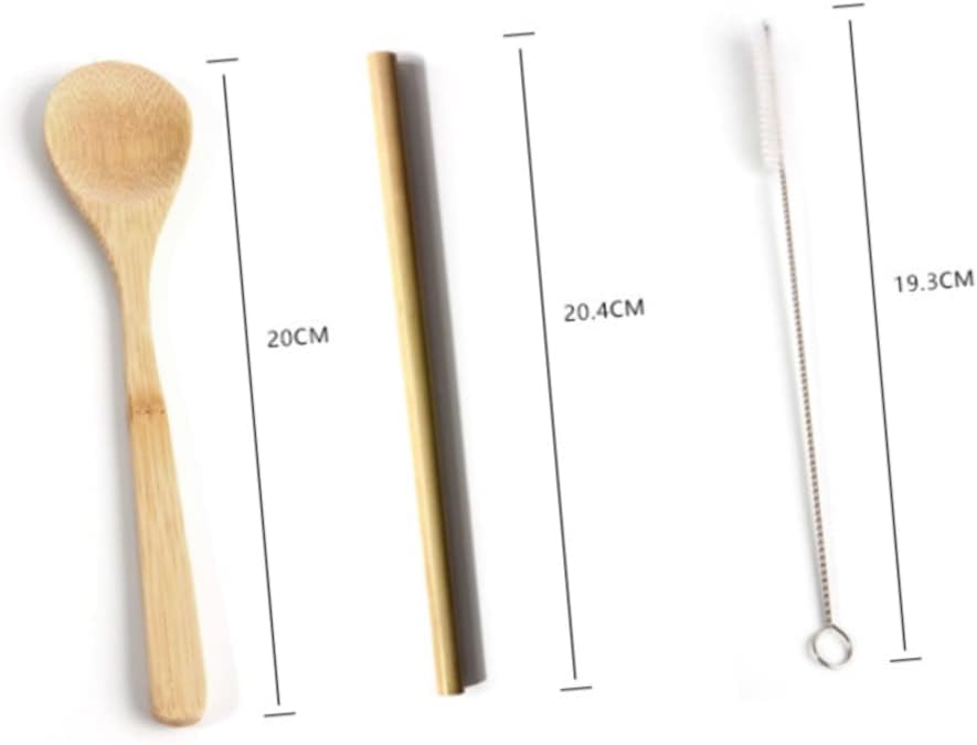 L'ensemble de couverts comprend une fourchette, un couteau et une cuillère (19 cm de long), tous fabriqués à partir de bambou certifié FSC. Dans l'ensemble, vous trouverez également une paille de bambou et un nettoyant pour paille (avec des poils en coque de noix de coco - pas de plastique ici !). Le tout est livré dans notre sac de rangement pratique en coton biologique naturel, sécurisé par un bouton-pression en acier inoxydable.