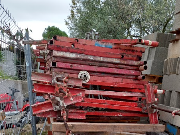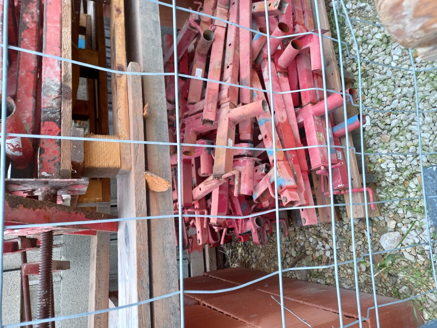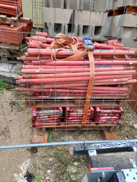 Lots de consoles métalliques pour échafaudage en hauteur (bas de pente ou pignons) complètes avec tiges d'ancrage, écrous, platines + tubes de gardes corps