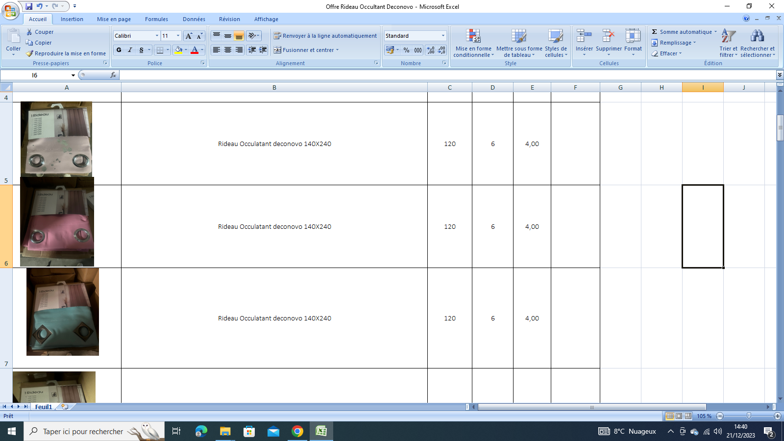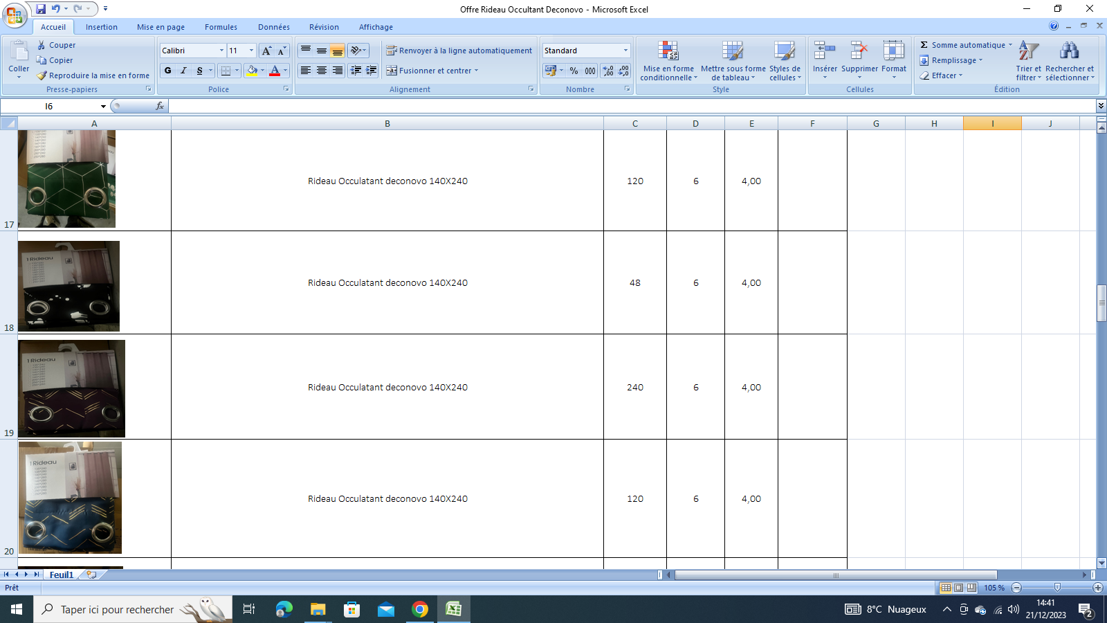Destockage de rideaux et voilage , produits de decoration interieurs , ci joint les fichiers de detail quantite de chaque model et prix .