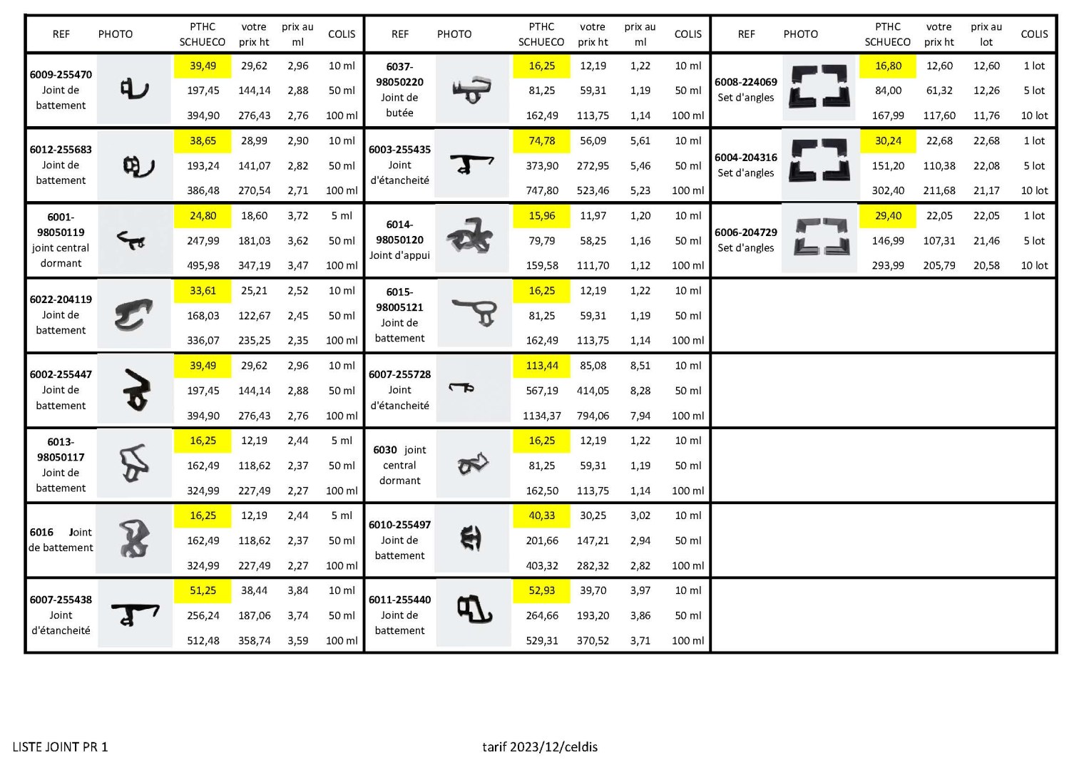 Ventes de joints pour profiles de menuiserie diverses et de marque schuco