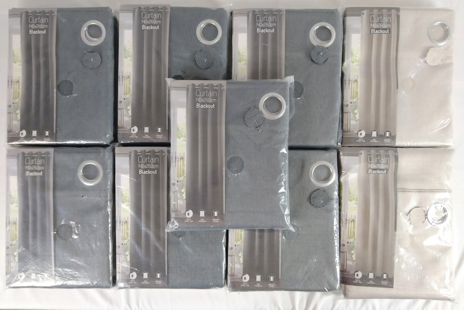 Lot de 9 Rideaux occultant prêt-à-poser Gris/Beige 140 x 260 cm œillets