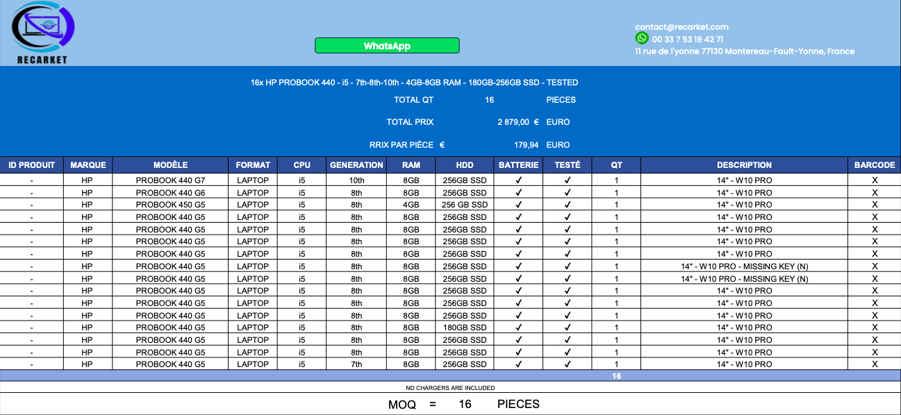 Cette page concerne les Fournisseurs et Grossistes de 16x HP PROBOOK 440 - i5 - 7th-8th-10th - 4GB-8GB RAM - 180GB-256GB SSD - TESTED Rechercher dans la catégorie : Informatique Rechercher dans la catégorie : 180gb, tested, 256gb, probook, 10th |